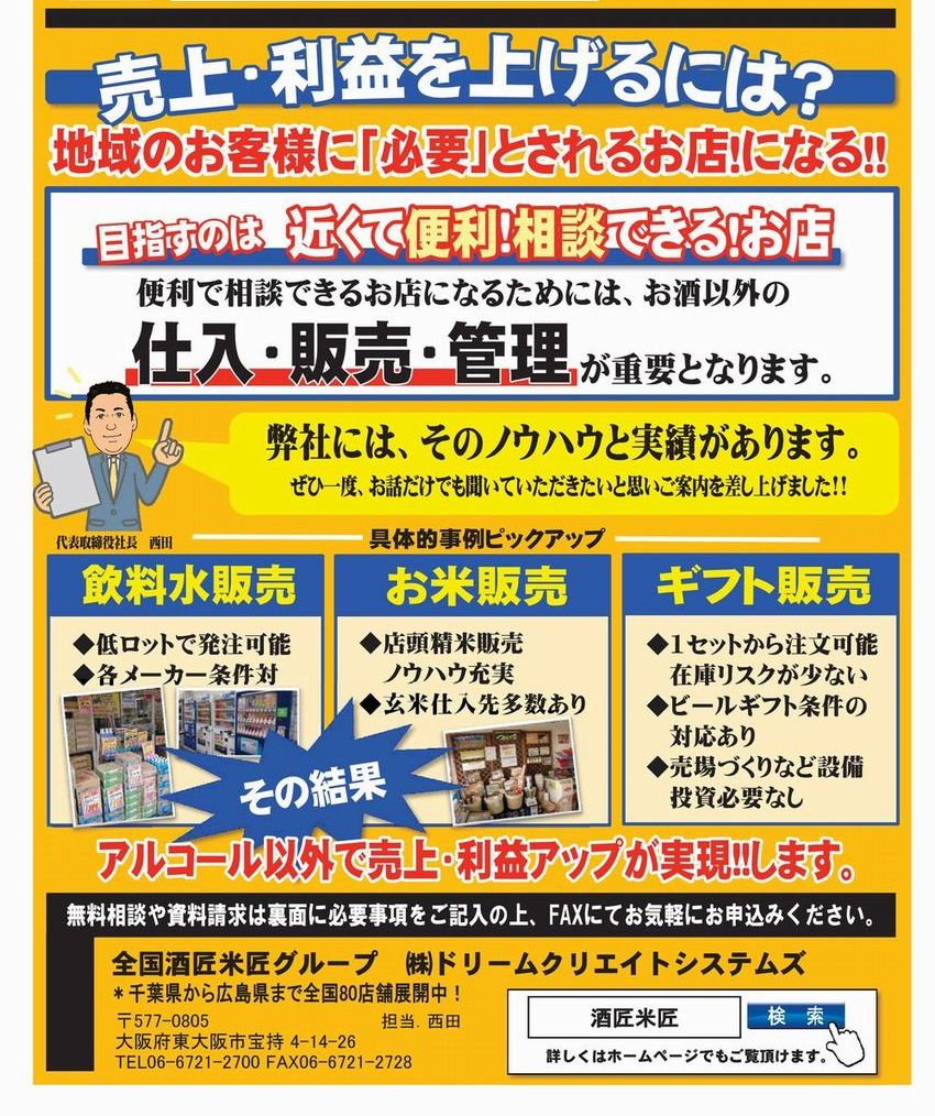 | 弊社 担当者 西田がお伺いし、上記の資料説明させて頂きます。 また、自店のお悩み等も お気軽にご相談ください。(無料にて対応致します!!) |